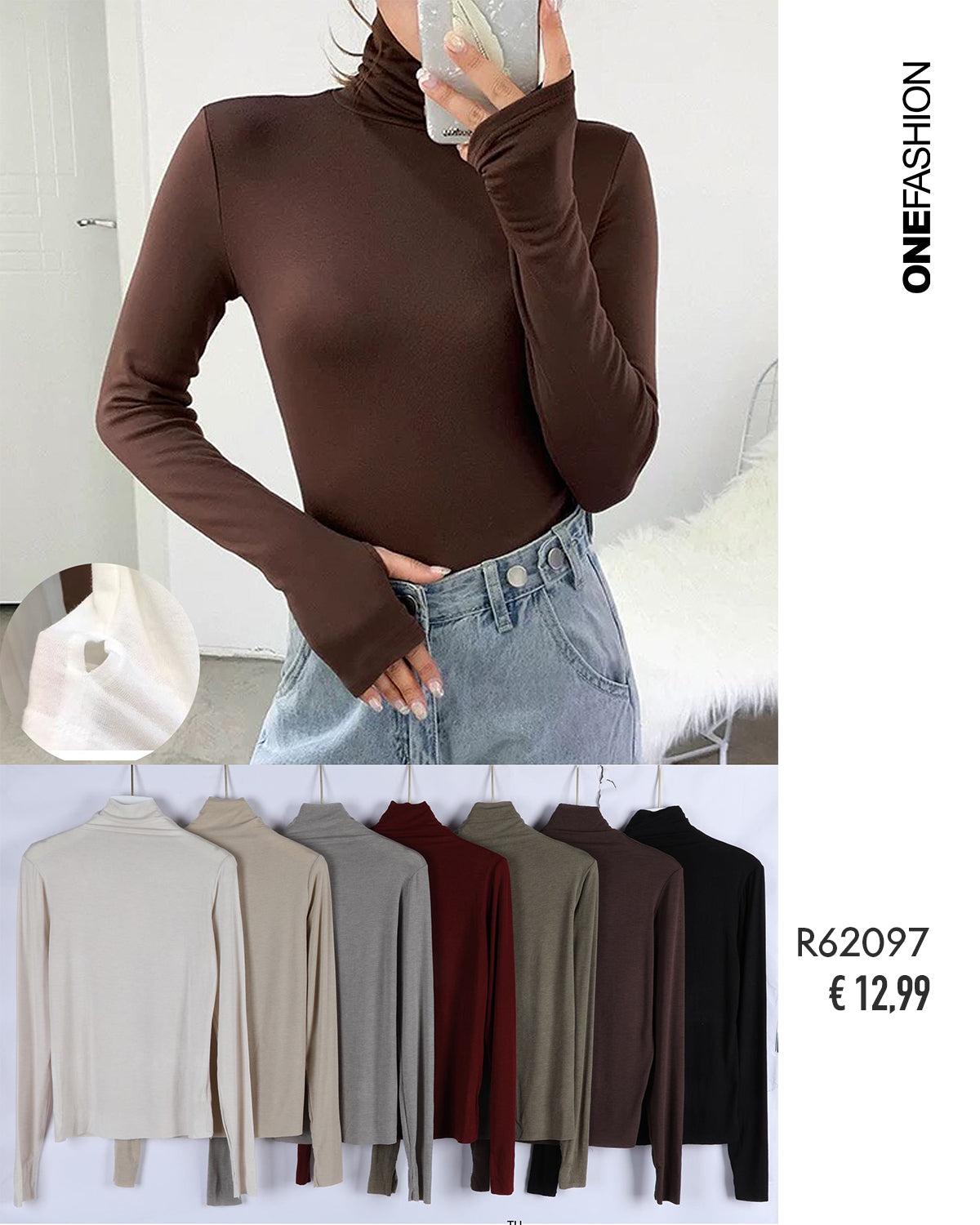 Un dolcevita contemporaneo che unisce funzionalità e stile. Il dettaglio del foro per il pollice aggiunge un tocco moderno e pratico, mentre la linea aderente abbraccia le forme con eleganza. Perfetto per la stagione fredda, senza rinunciare allo stile.
